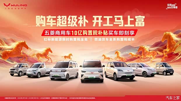 2026年新能源汽车购置税政策迎来调整,正式由“免征”进入“减半征收”新阶段。在这一政策背景下,始终与奋斗者同行的五菱商用车,敏锐洞察政策调整对用户购车成本的实际影响,以及开工季广大奋斗者对创富工具的切实需求,五菱商用车正式宣布启动总额高达10亿元的购置税补贴政策,为每一位奋斗者降低至高5%的购车成本,助力实现“开工马上富”。