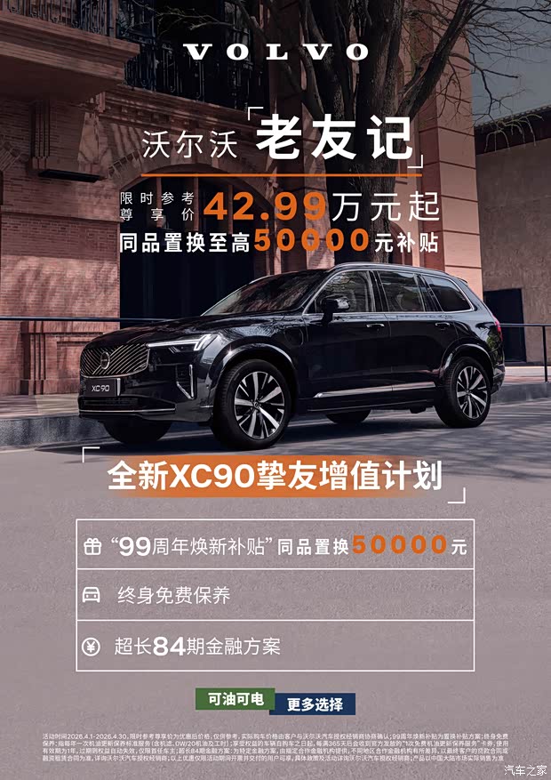 🚗 从 1927 到 2026,沃尔沃 99 年始终坚守「安全、健康、可持续」的品牌理念。全新 XC90 作为品牌旗舰,不仅承载了北欧豪华的精髓,更以本次老友记专属福利,回馈每一位信赖沃尔沃的用户。