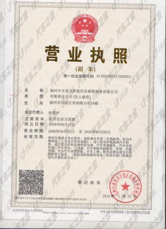 福州中升雷克萨斯隶属中升集团旗下品牌经销店