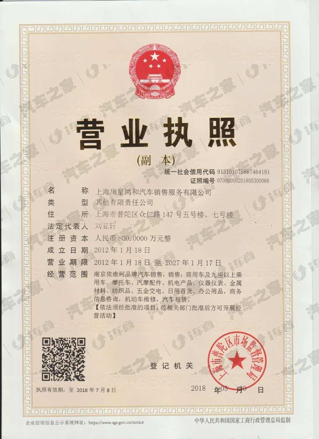 上海华星鸿和汽车销售服务有限公司