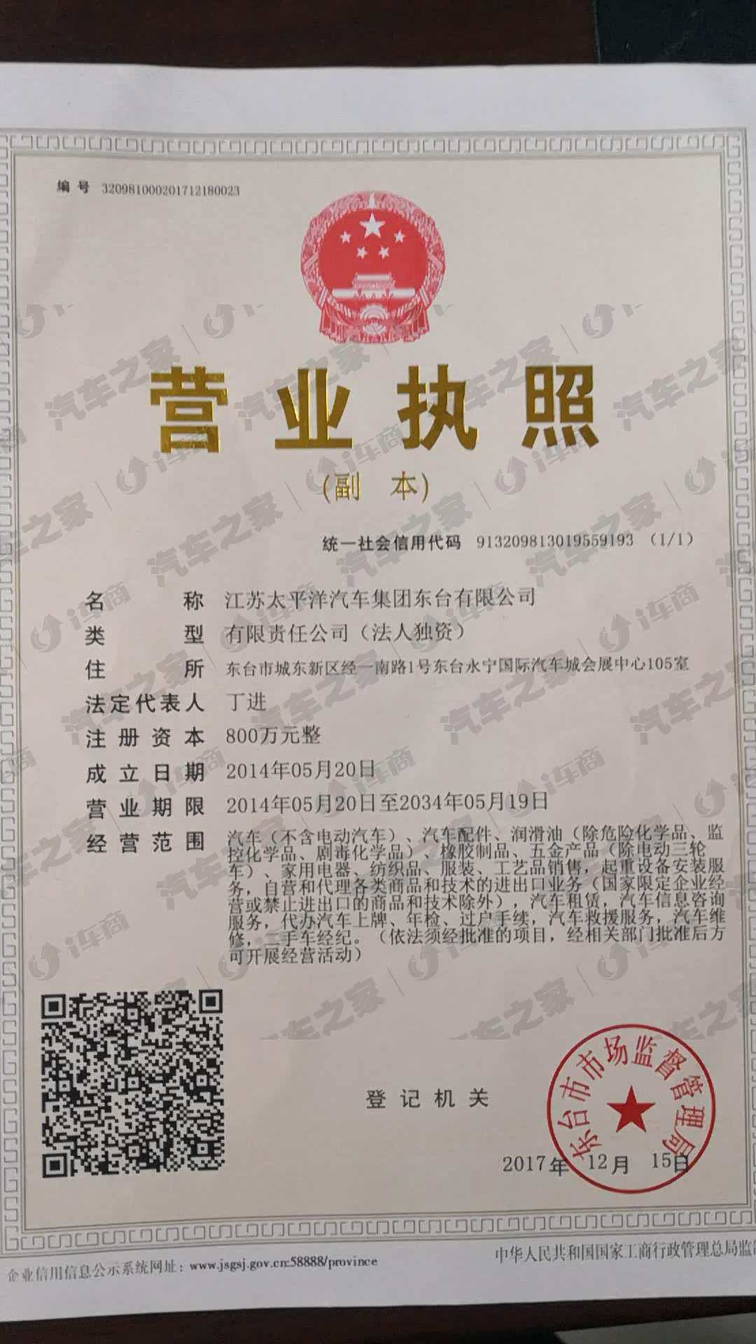 江苏省盐城市东台市城东新区南庄路18号永宁汽车城2幢