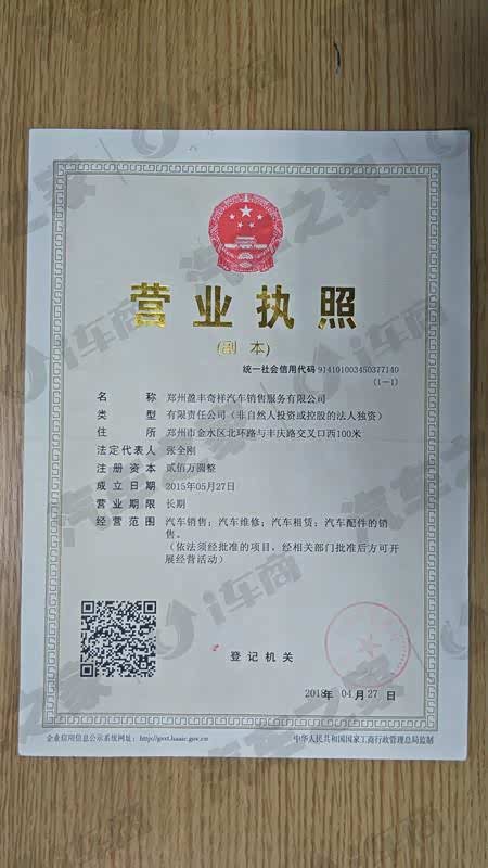 郑州盈丰奇祥汽车销售服务有限公司