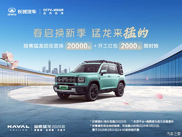 哈弗猛龙超级置换20000元+开工红包2000元限时抢