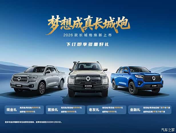 | 2026款 2.0T乘用炮自动汽油四驱舒适型 | 13.38万 | 0.60万 | 13.98万 | 询价 |