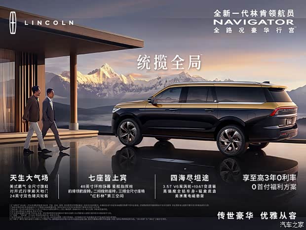 无论是正在创业的年轻企业家还是久经商界的企业大佬,在接待客户、参加会议或者商务活动的时候都需要用车,拥有一辆体面的商务用车非常重要。美式豪华品牌林肯拥有百年底蕴,曾作为多届美国总统出行座驾享誉全球。林肯旗下豪华全尺寸SUV领航员(图片|配置|询价)更是集傲然雄姿、澎湃动力与舒享豪华座舱于一身,满足商务接待、会议洽谈等各种场景的用车需求。