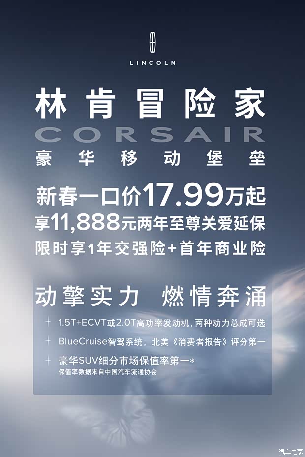 林肯冒险家一口价17.99万享11888两年延保