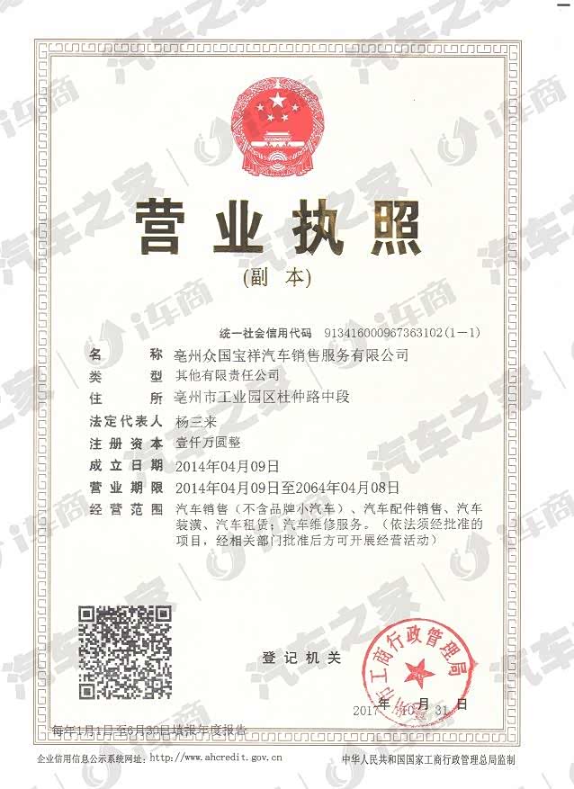 亳州众国宝祥汽车销售服务有限公司