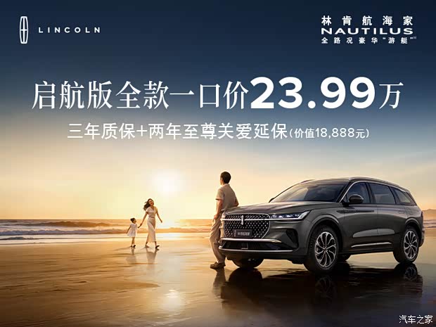 当第一缕晨光洒向沙滩,海浪轻吻着 shoreline(海岸线),一家人的温馨时光就此定格。而这美好的画面里,林肯航海家启航版正以全路况豪华 “游艇” 的姿态,成为幸福生活的伙伴。现在,启航版全款一口价仅需 23.99 万,更有三年质保 + 两年至尊关爱延保(价值 18,888 元)重磅加持,让你轻松拥有豪华座驾,开启非凡旅程。