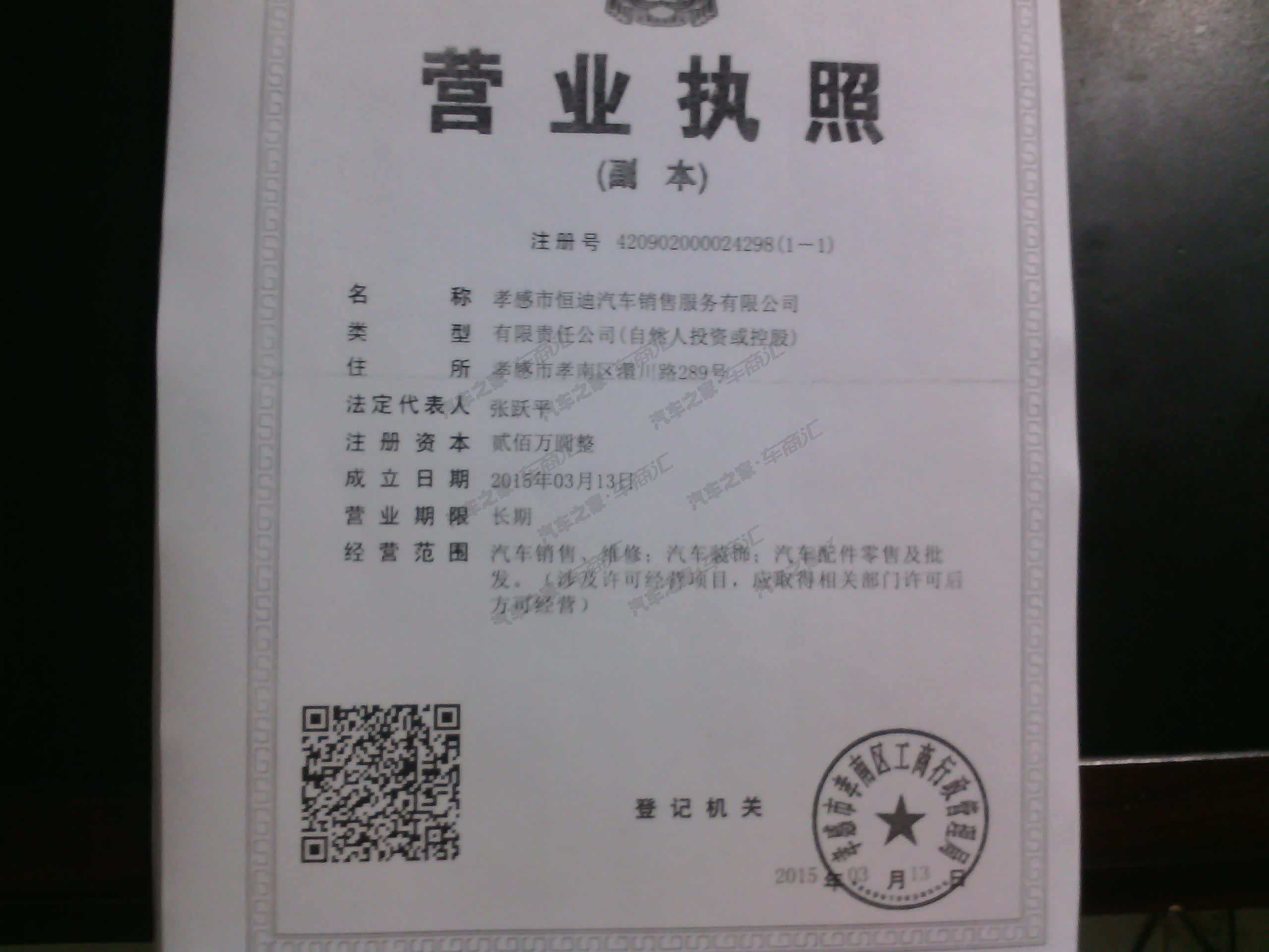 本店坐落于孝感市澴川路289号(华骏汽车城)是名副其实的孝感地区汽车市场,本店占地面积约3000平方米,售前售后一体结构,本公司现有员工45人,管理人员6人.