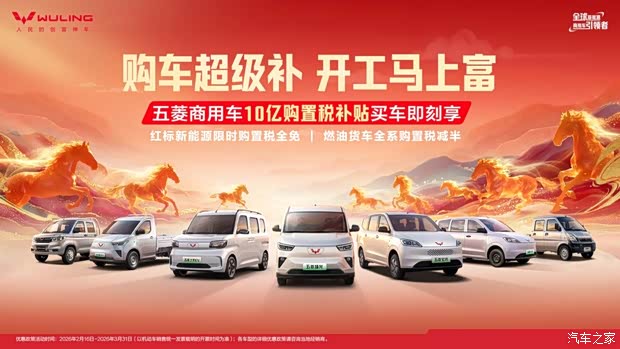 春节开工旺季,物流配送、城乡运输、个体创业都需要一台靠谱座驾。五菱商用车推出10亿购置税补贴,燃油货车、新能源货车双重让利,至高综合优惠超7000元,活动截止2026年3月31日,现在入手正是时机。