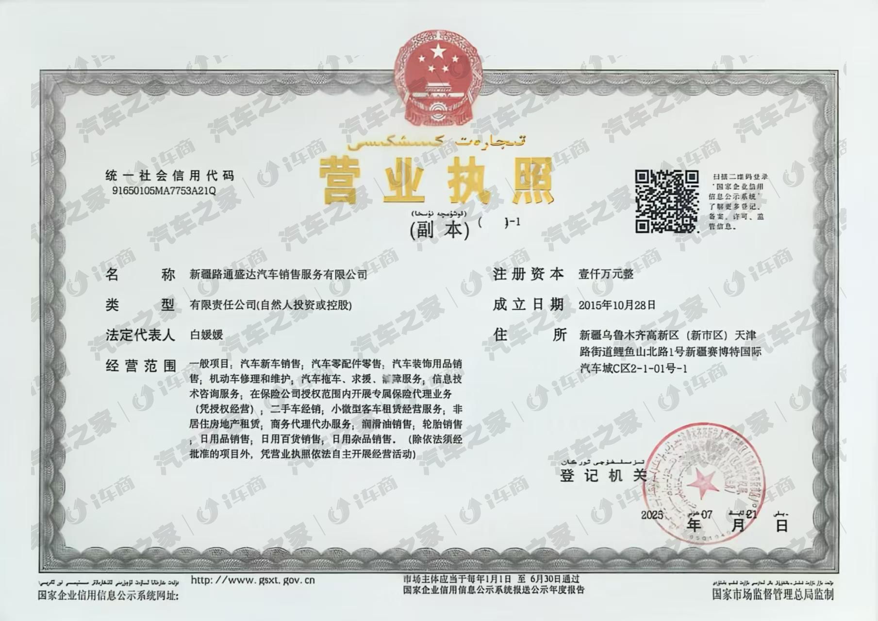 新疆乌鲁木齐高新区(新市区)天津路街道鲤鱼山北路1号新疆赛博特国际汽车城C区2-1-01号-1