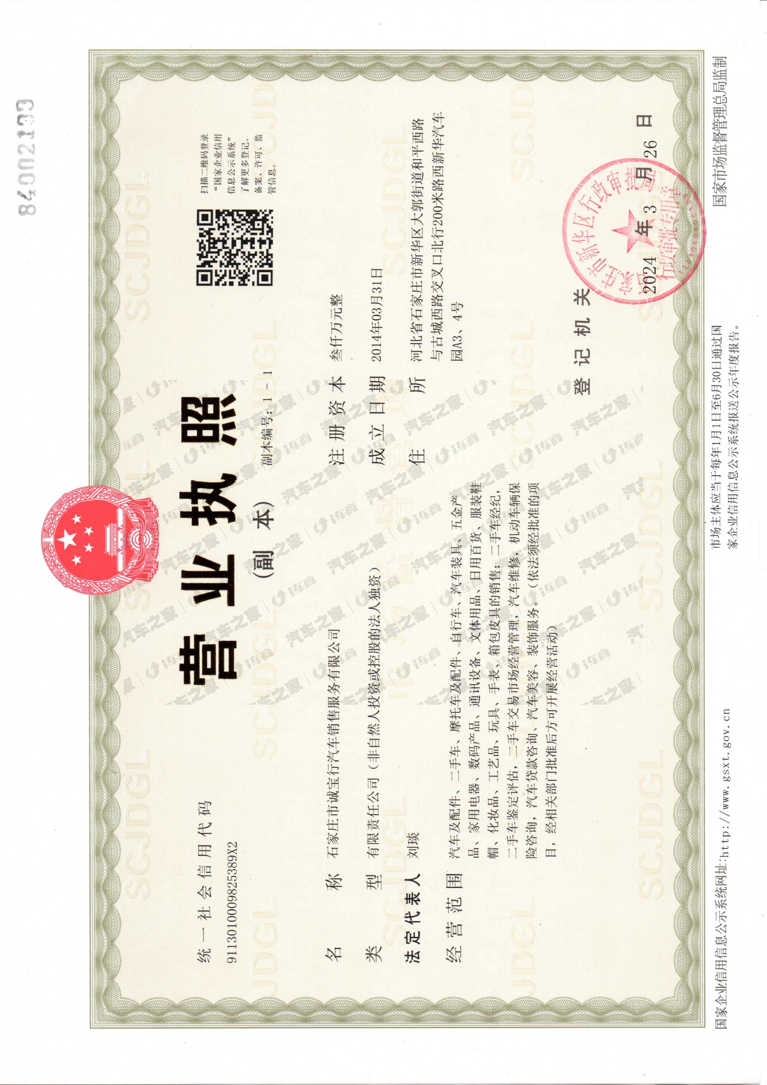 石家庄市诚宝行汽车销售服务有限公司