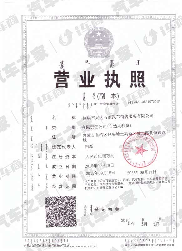 五菱包头兴达五菱销售中心