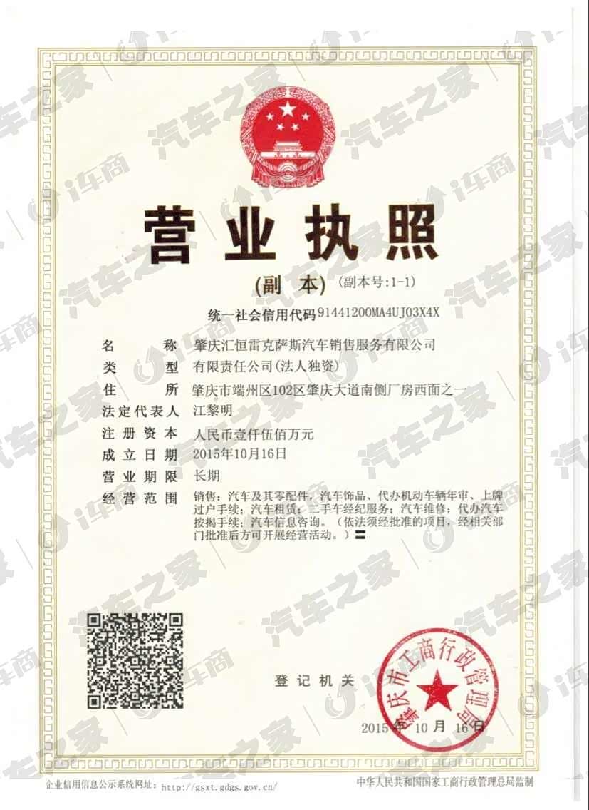 肇庆汇恒雷克萨斯汽车销售服务有限公司