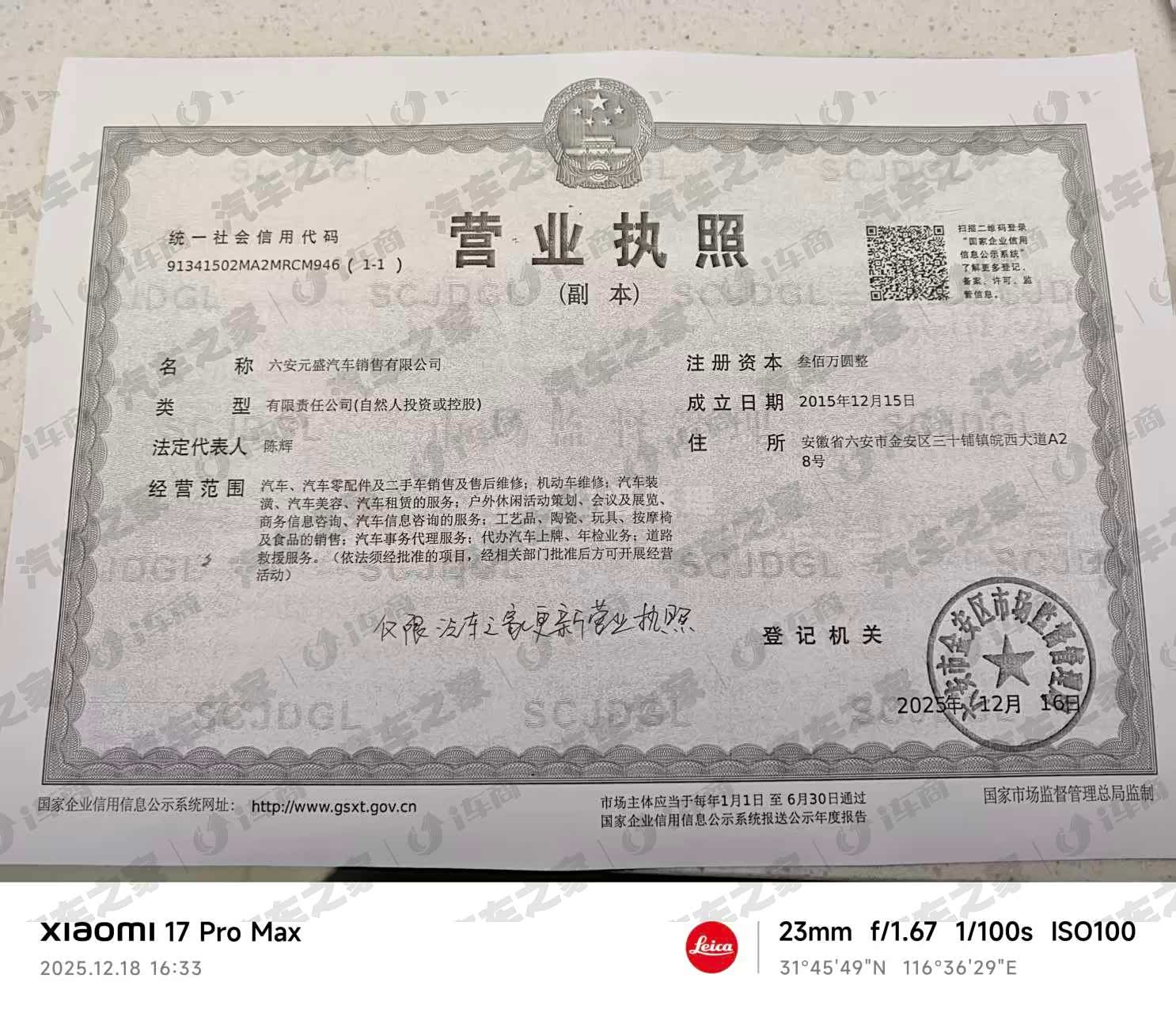 营业执照: