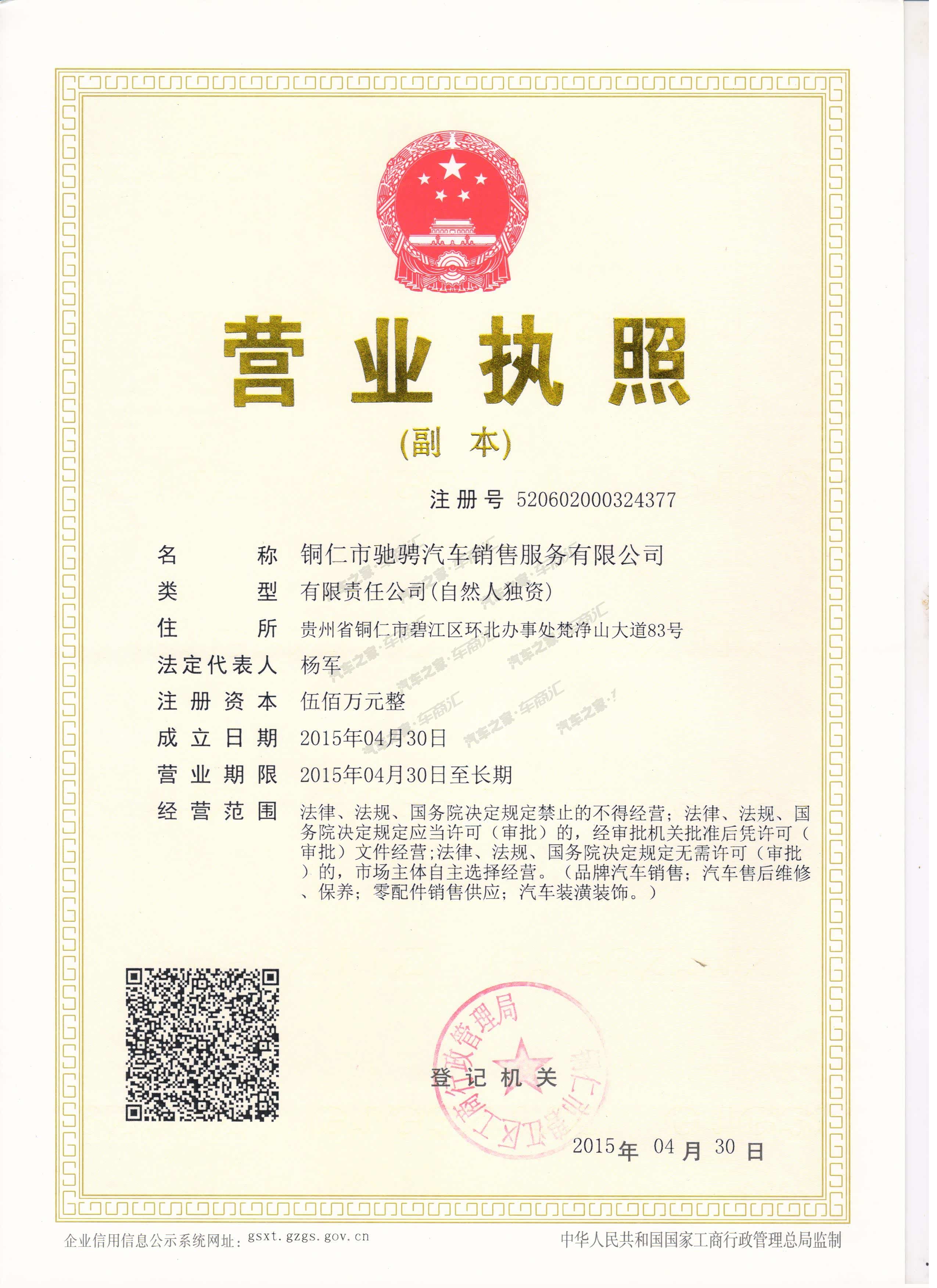 铜仁市驰骋汽车销售服务有限以司成立于2014年4月,注册资金500万元,地处贵州省铜仁市碧江区灯塔武陵山汽车城第三栋。奇瑞汽车,铜仁地区的销售服务4S店。具有整车销售、原装原厂零配件、售后服务、信息反馈等功能。
