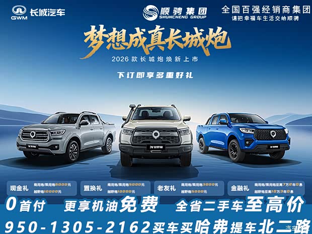 购车用户还可享多重上市礼遇,诚意满满。2026款商用炮用户可享6000元现金礼、5000元置换礼、3000元老友礼以及金融礼、服务礼五重大礼;2026款乘用炮可享受6000元现金礼、5000元置换礼、3000元老友礼以及金融礼、服务礼、互联礼六重大礼;2026款越野炮用户则可享10000元现金礼、10000元置换礼、5000元老友礼以及金融礼、服务礼、互联礼六重大礼。