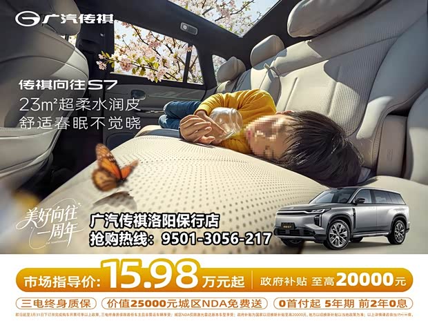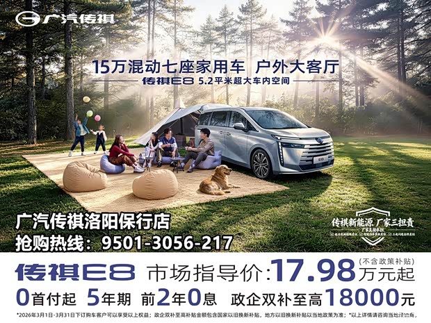 传祺GS8,置换补贴至高13000元,0首付起,5年期,前2年0息