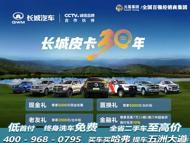 好开,2026款金刚炮搭载柴/汽油2.0T+8AT/6MT黄金动力组合,发动机累计销量超百万,品质可靠、经济高效,稳居中国皮卡第一,配备采埃孚8AT世界十佳变速器,全球装机量超千万,稳定可靠。好用,1.82米纯平长箱、平箱车型升级6片钢板弹簧,再多货物也能稳稳承载;新车车姿抬高20mm,底盘通过性更强,货箱离地高度降低10mm,搬运货物更省力省时;省心,采用高强度笼型车身+大截面梯形车架,整车经历1728小时强化腐蚀试验、1000小时盐雾实验,更安全耐用。