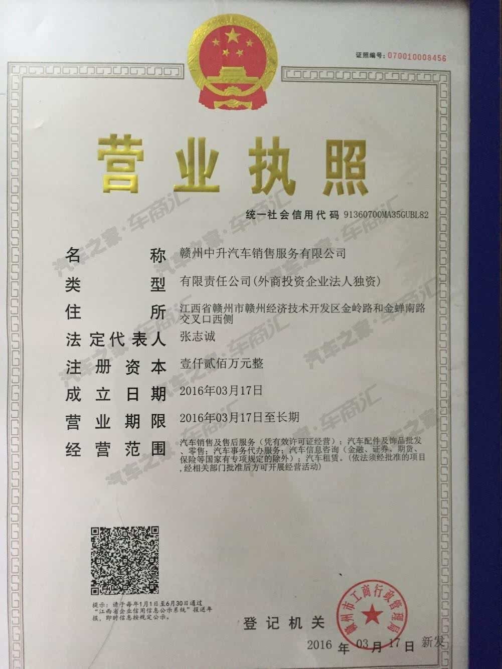 赣州中升汽车销售服务有限公司