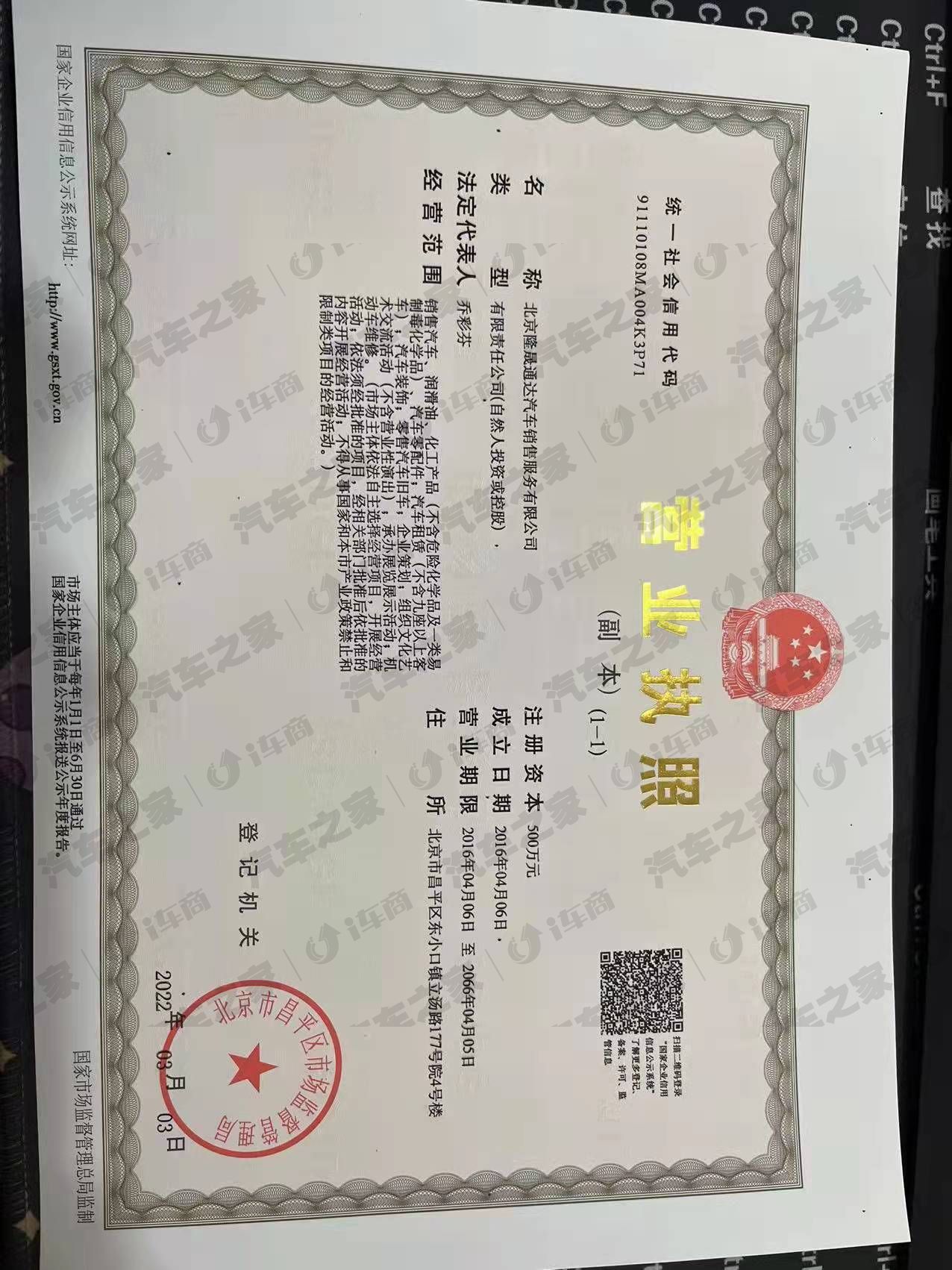 北京隆晟通达汽车销售服务有限公司