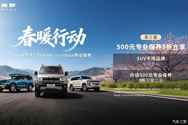 北京越野春暖行动是一场覆盖产品、金融、服务全维度的系统性发力。在市场竞争日趋激烈、用户消费愈发理性的行业背景下,北京越野以长周期金融政策打破行业惯例,以全链路服务构建品牌护城河,以普惠保养回馈SUV市场,既回应了消费者对购车门槛的真实焦虑,也展现了头部品牌对市场节奏的精准把控。未来,北京越野将基于品牌实力与市场远见,持续深耕用户需求。通过不断优化金融方案、完善服务体系,解决用户痛点。北京越野用实实在在的行动,守护每一位用户从向往到出发的全过程,让高品质出行生活离消费者更近一步。