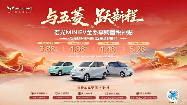 宏光mini全系享购置税补贴,综合补贴价3.88万元起!可叠加享受国补或者省补!