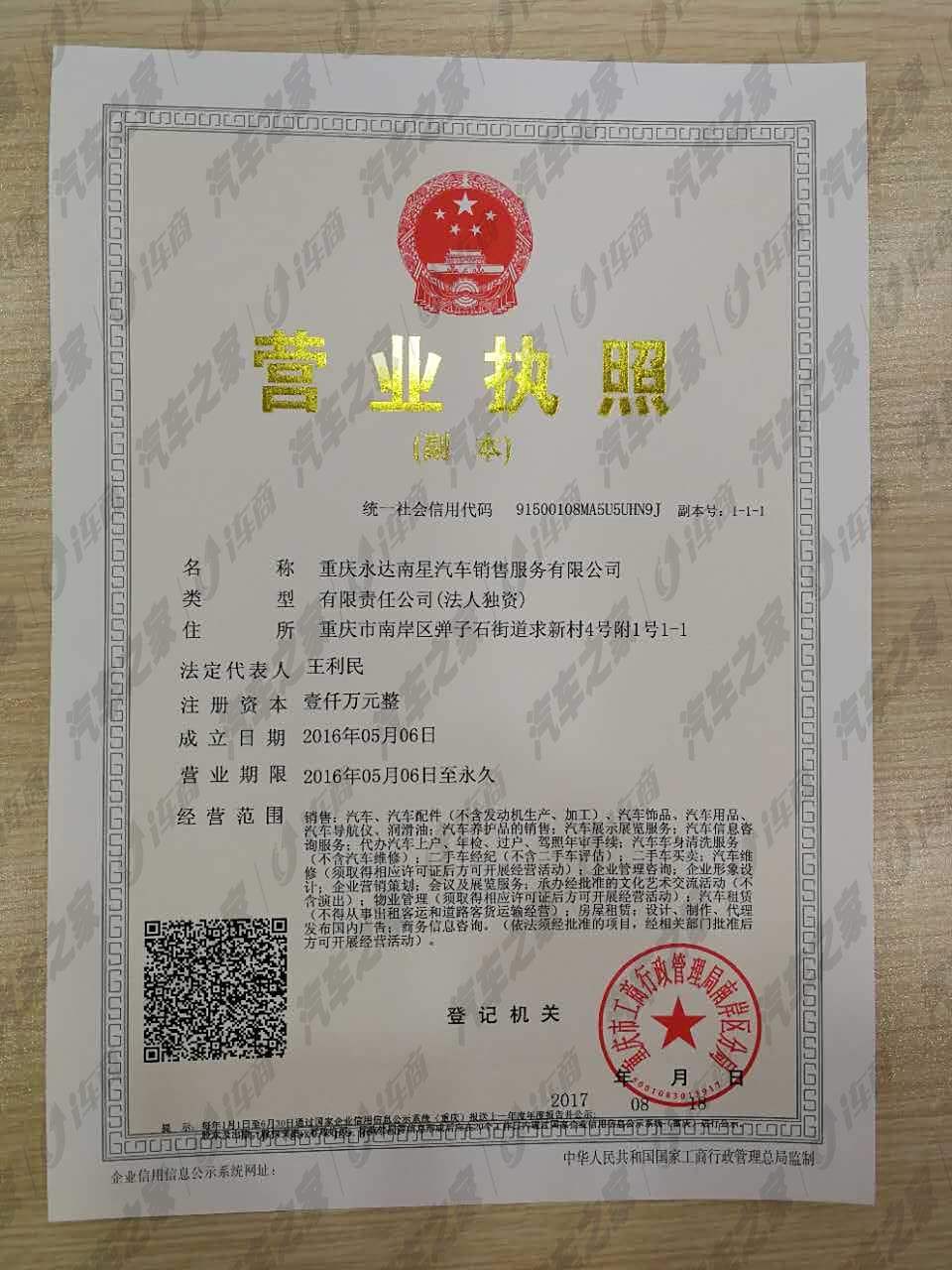 重庆永达南星汽车销售服务有限公司