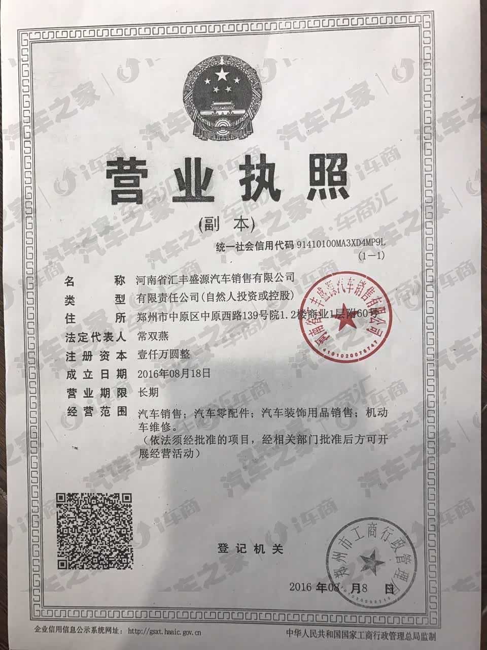 河南省汇丰盛源汽车销售有限公司
