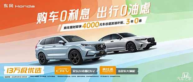 焕新礼:CR-V/CIVIC思域以旧换新补贴至高4000元。