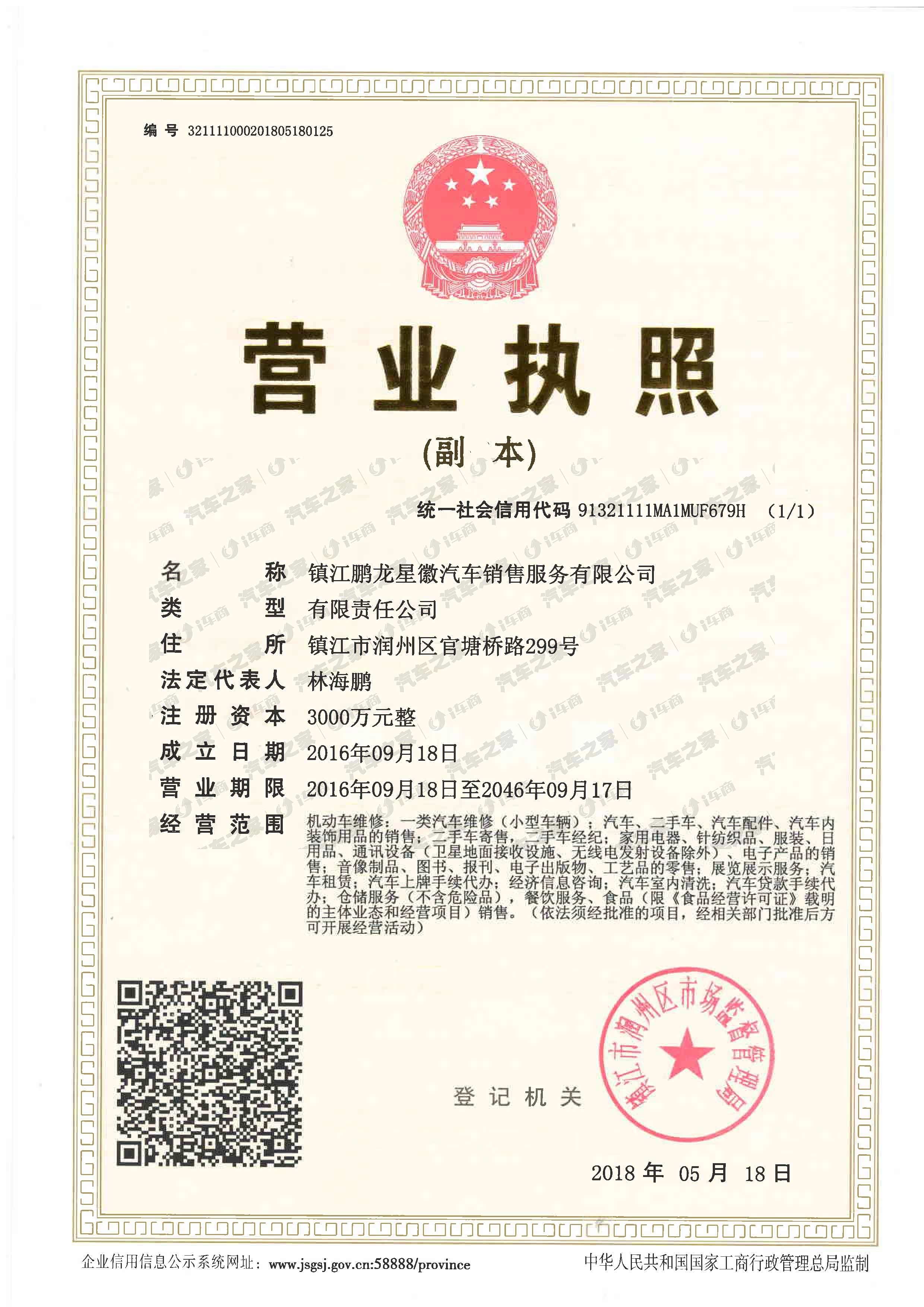 镇江鹏龙星徽汽车销售服务有限公司本着“北汽、直营、责任、创新”的经营理念,以员工满意、顾客满意、社会满意、厂家满意、 股东满意为宗旨,以能让更多镇江市民享受梅赛德斯奔驰品牌汽车的驾驶和乘坐乐趣为目的服务于大家!