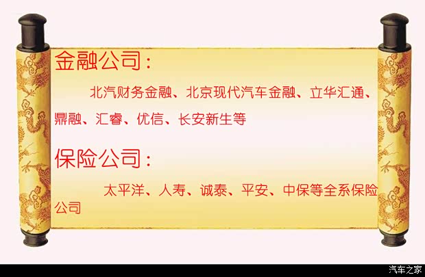 公司与北汽金融、北京现代金融、立华汇通等专业金融机构及平安保险、太平洋保险、中保保险、太平保险等大型保险公司合作,为客户提供完整的售前售后金融保险服务。