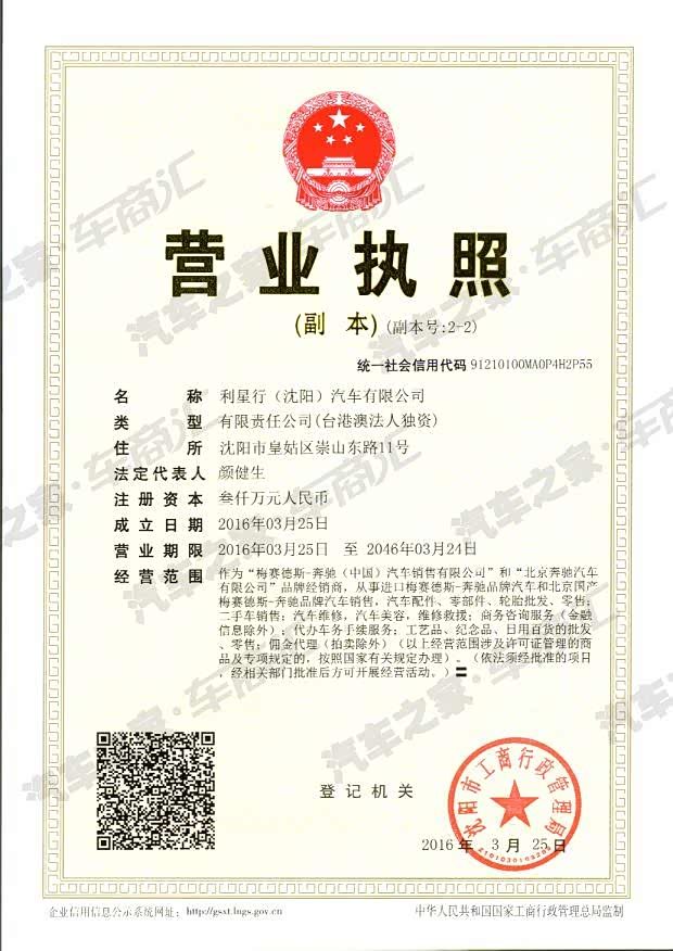利星行----专注奔驰品牌的经销商集团; 利星行沈阳----位于皇姑区崇山东路11号(老长客总站原址),地理位置优越,环境优雅; 网络预约进店的客户即可享受伴手礼一份! 到店可以品尝特色饮品! 可以带家人朋友带上驾照来店内试乘试驾感受! 约4000平方米地下车库,新车质量有保障,每年2000位车主的放心之选!