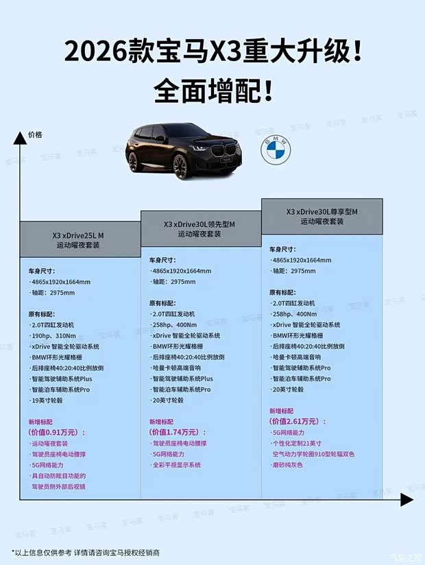 这一代国产宝马X3加长之后,它内部的空间、尺寸、舒适度可以说是做的已经很好了,然后2026款增配完之后,这台X3可以说是真正的六边形战士,再加上这么香的价格,小编觉得这台车在2026年一定能卖到爆。