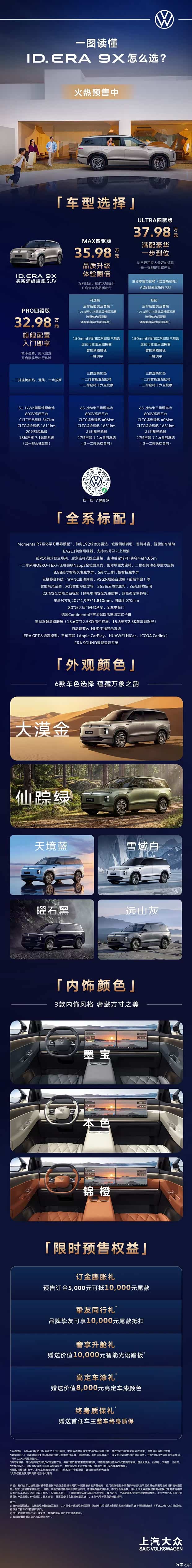 当德系精工的底蕴遇上智能时代的革新,ID.ERA 9X 以旗舰之姿,重新定义高端增程 SUV 的价值标尺。预售 32.98 万起,以“入门即豪华”的诚意,为追求品质与实用的家庭,呈上满配出行新选择。