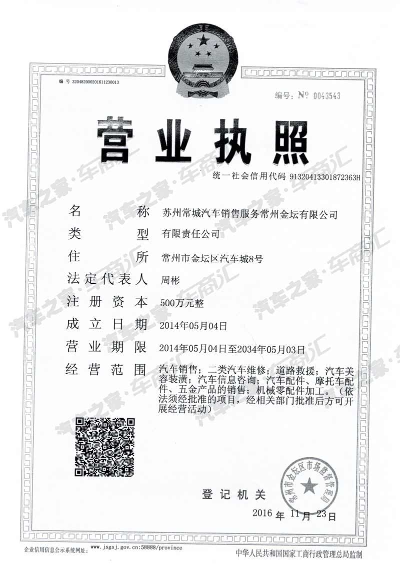 金坛常城,位于金坛开发区汽车城8号,隶属于苏州常城集团公司。集团公司2015年销量6700台,销售额达39.7亿元,长城-哈弗销量遥遥领先与同行业。集团公司设有:苏州常城店,苏州恒通店,常州常城店,常州恒立店,溧阳常城店,金坛常城店及常州新北店,金坛常城位于南环二路与金宜路交叉口(金坛汽车城内)。项目总投资5000万,年销售量1000台,建筑面积8500平米,是苏锡常最大双品牌旗舰4S店。