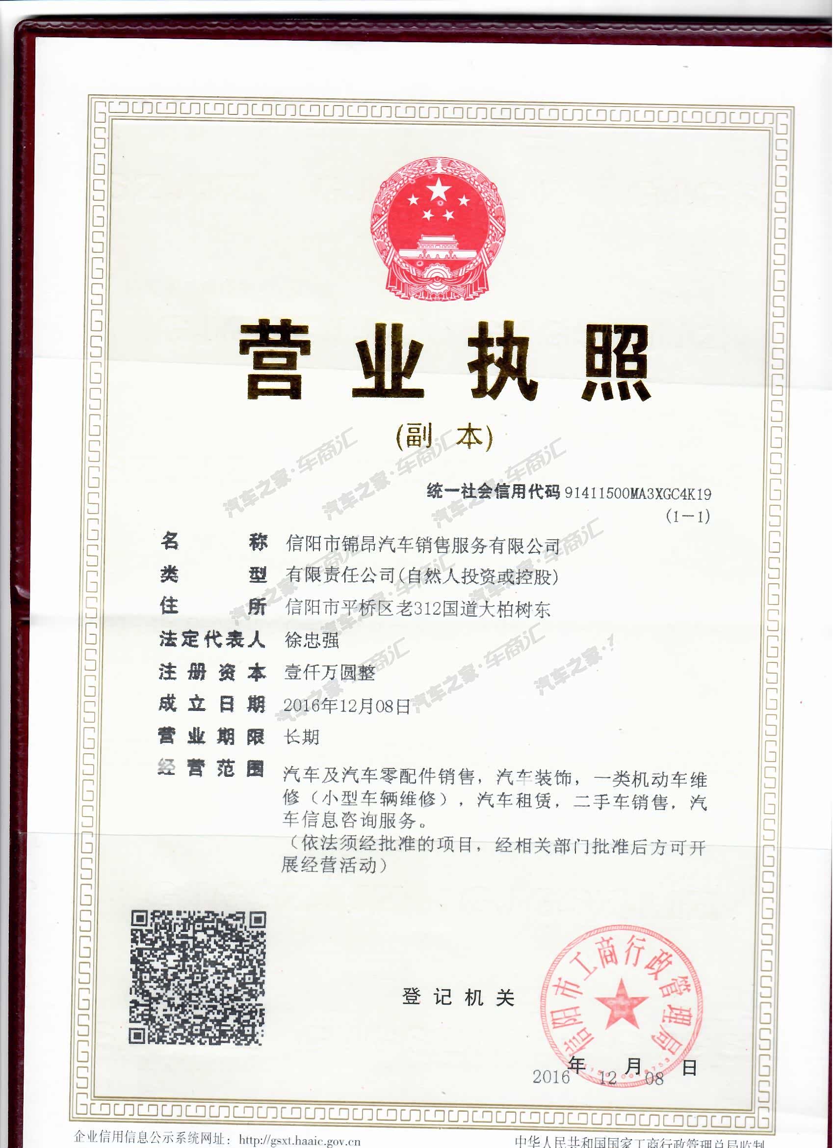 信阳市锦昂汽车销售服务有限公司
