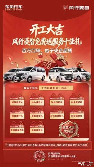 在产品实力拉满的同时,2027款菱智PLUS更以诚意政策击穿行业壁垒,降低创富门槛。新车官方预售价8.99万元起,开工节限时置换一口价低至7.99万元起,让更多创业者轻松入手高品质大商务MPV。此外,多重福利同步加持:成功购车可参与抽奖,有机会赢取最高8888元开工红包;行驶里程超5万公里的风行菱智、其他同级商务车、微面、轻客等车主,到店即可尊享“服务十佳礼”,以实打实的政策回馈,为创富者保驾护航,彰显东风风行的品牌诚意。