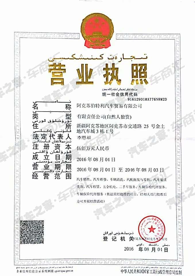 阿克苏伯特利汽车贸易有限公司