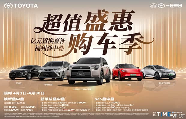 来电礼:一汽丰田bZ5限时享0首付起3年0息,低月供五年0息等金融政策