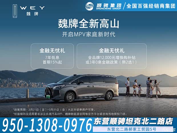 车源足、价格优,店内足不出户即可挂牌!购车按揭、保险、上牌等一站式服务;买车请认准顺骋坦克-东营顺骋店!店内多重豪礼等您来拿!