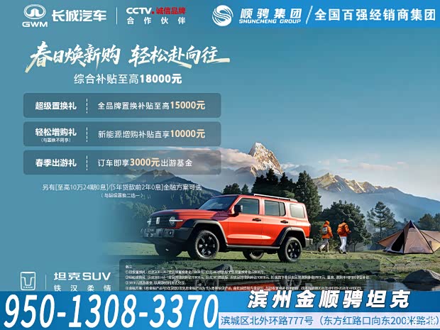 车源足、价格优,店内足不出户即可挂牌!购车按揭、保险、上牌等一站式服务;买车请认准顺骋坦克-滨州金顺骋店!店内多重豪礼等您来拿!