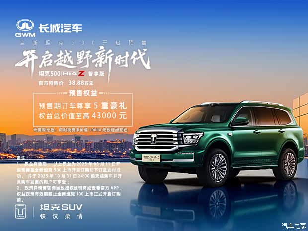 全新坦克500 Hi4-Z 智享版,预售期订车尊享5重豪礼