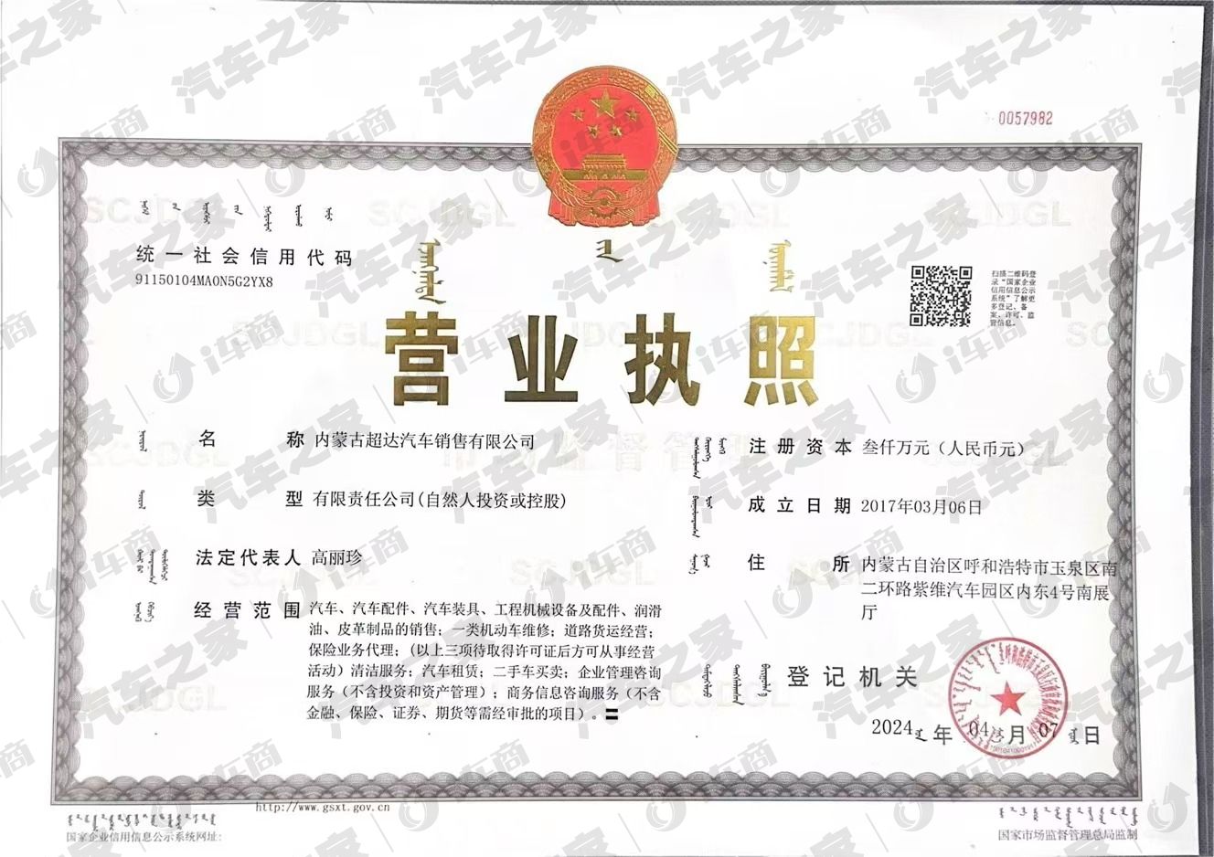 内蒙古呼和浩特市玉泉区南二环紫维汽车城内