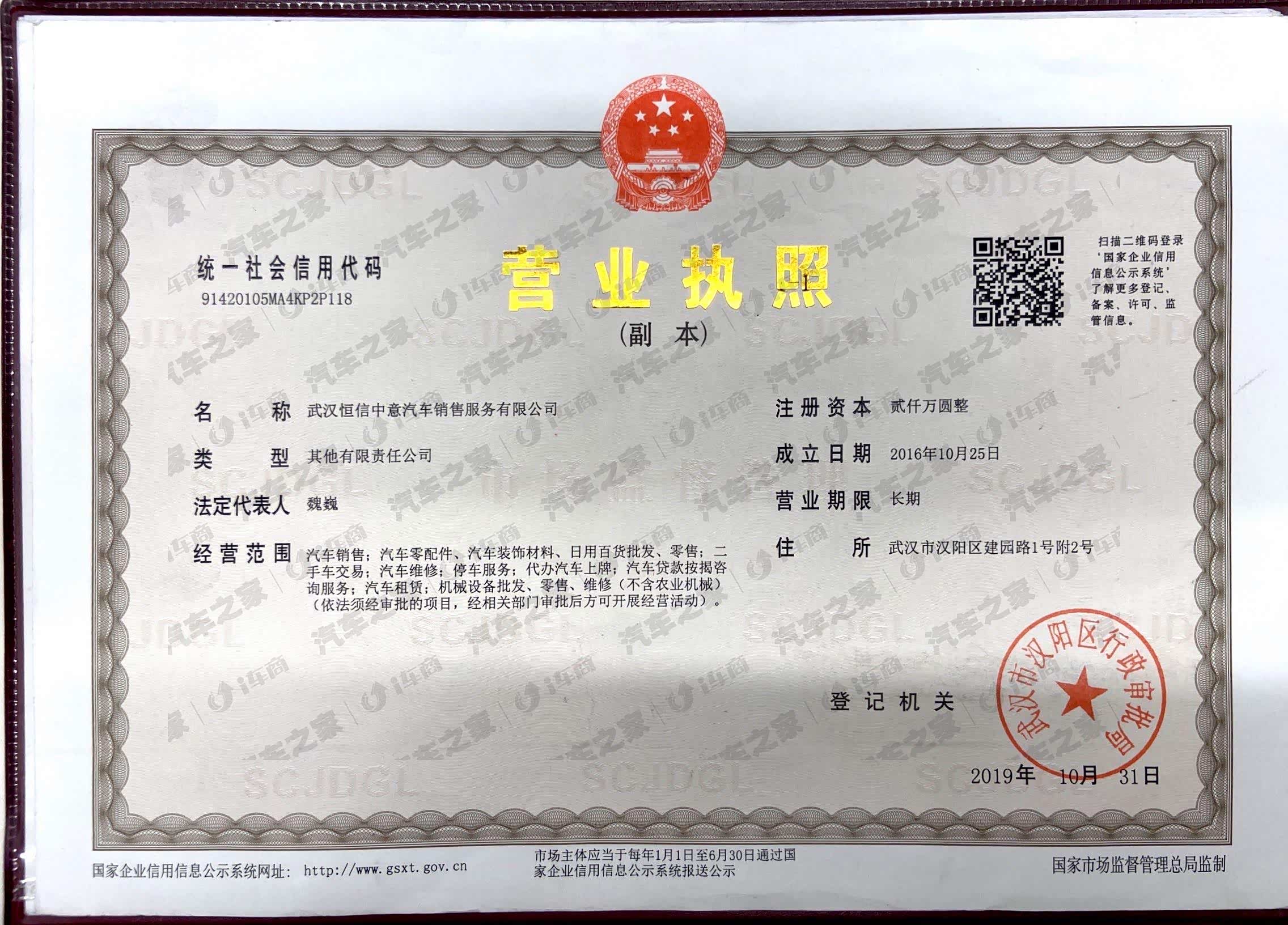 武汉中意汽车销售服务有限公司隶属于恒信汽车集团。恒信汽车集团,连续多年荣获“中国汽车流通行业杰出贡献奖”、“中国汽车流通行业企业品牌最具影响力奖”、“中国汽车流通行业卓越贡奖”及“社会责任公益奖” ,年销售收入超过800亿元,中国汽车经销商集团百强排名第五名,中部地区第一,位列中国企业500强第297位、中国民营企业500强第127位、湖北省前三。