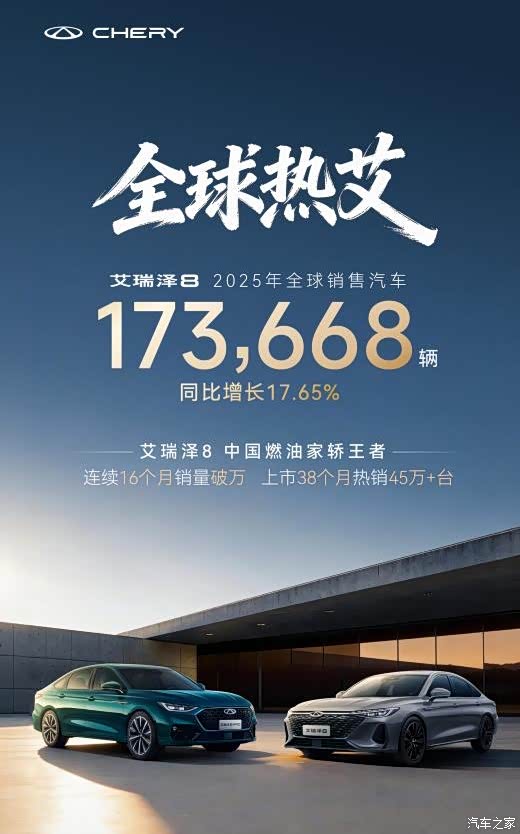 2025年,艾瑞泽8家族以全球销量173668辆、同比劲增17.65%的硬核战绩圆满收官;自上市以来,家族38个月累计销量突破45万辆,更创下连续16个月销量破万的行业佳绩,在竞争激烈的市场红海稳立潮头。艾瑞泽8家族的成功并非偶然,在同质化竞争激烈的家轿市场,家族通过艾瑞泽8与艾瑞泽8 pro双线布局,全面覆盖家庭实用、运动性能等多元化需求,持续吸引年轻消费群体。这种快速响应市场的进化能力与精准的市场布局,正是其赢得全球用户青睐的关键所在。