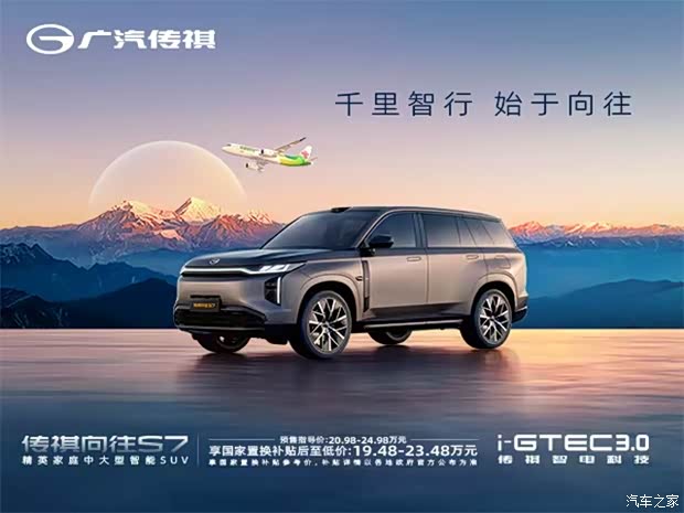 传祺向往S7预售权益: 一:【极东启程礼】 1:支付999元订金抵3000购车款 2:限时享3年10万0息,暖心启程 二:【极南智行礼】 1:下订激光雷达版,限时免费赠送价值25000元城区NDA终身使用权 2:终身不限量基础流量,3年15G/月娱乐流量 三:【极西守护礼】 1:7*24小时厂家直服道路救援终身宝障 2:首年维保免费上门取送车 四:【极北逐光礼】 1:至高价值25500元定制升级基金,向往触手可得 五:【四极畅行礼】 1:下订即有机会,抽取20000元旅游基金,畅行四极 六:【定制升级基金】:定制升级套装含多种配置套装选择,具体规则详见APP下订提示支 持时间:3月7日预售开启至正式上市当天 更多向往好礼 敬请期待上市解锁