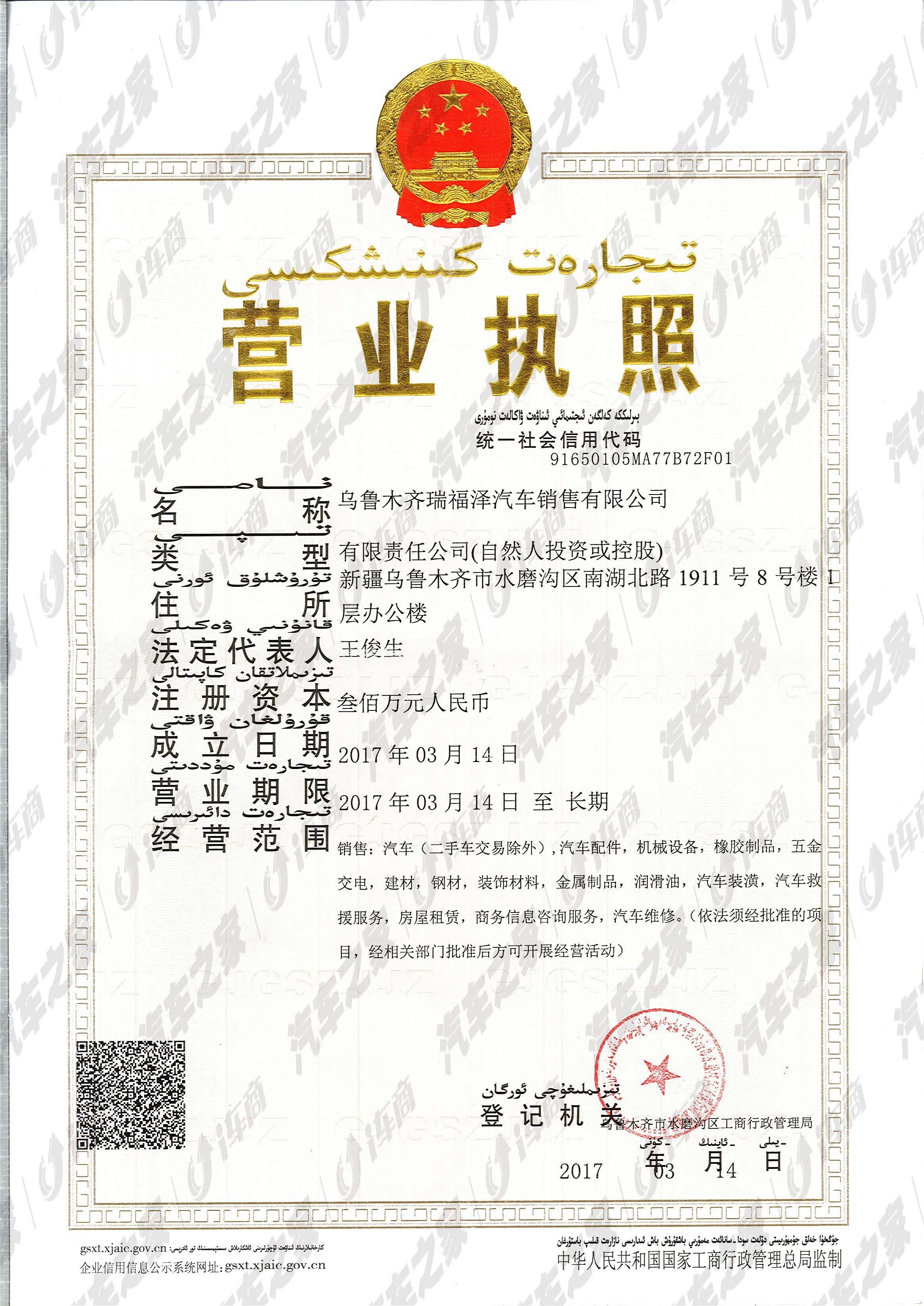 乌鲁木齐瑞福泽汽车销售有限公司