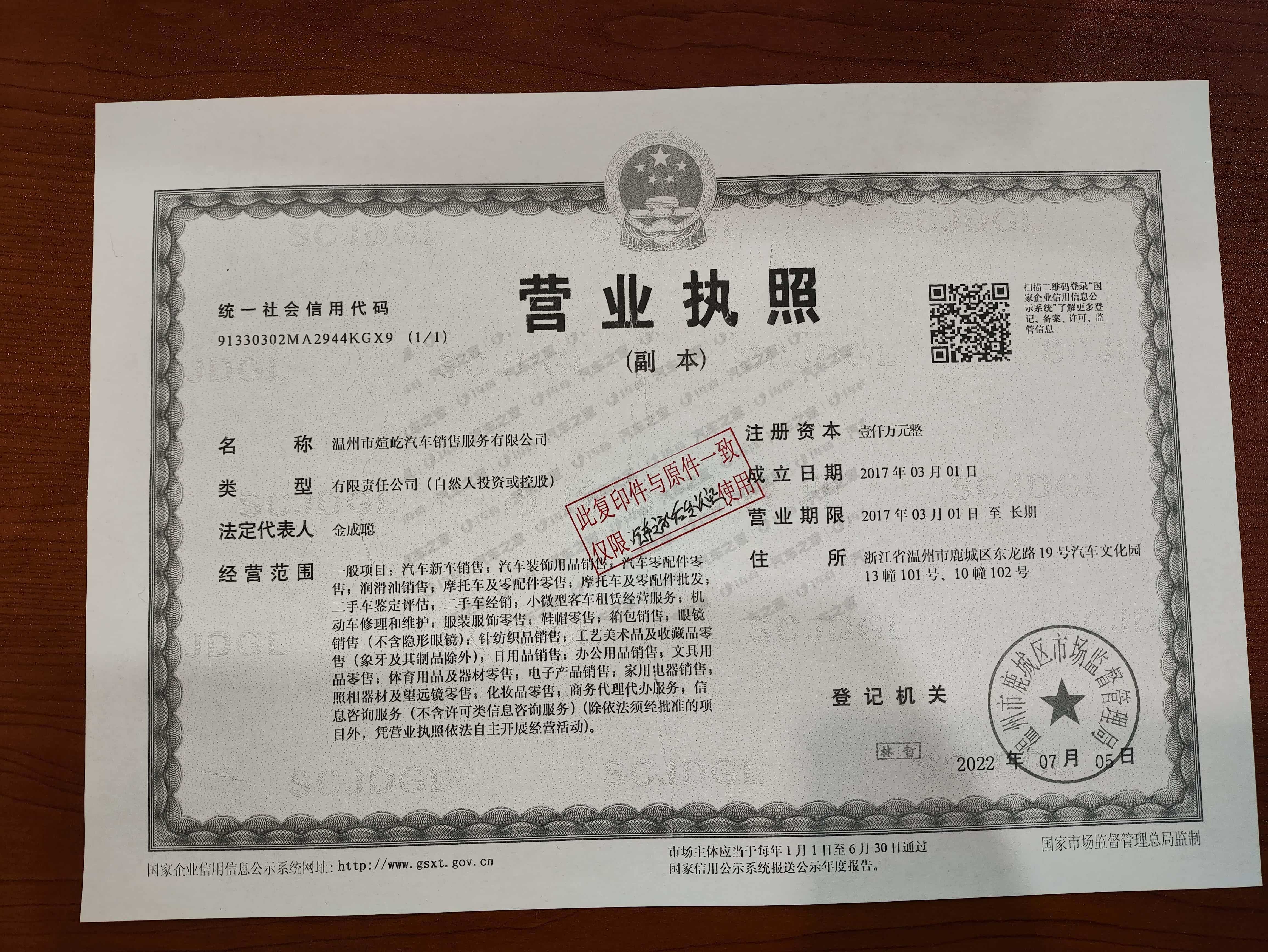 营业执照: