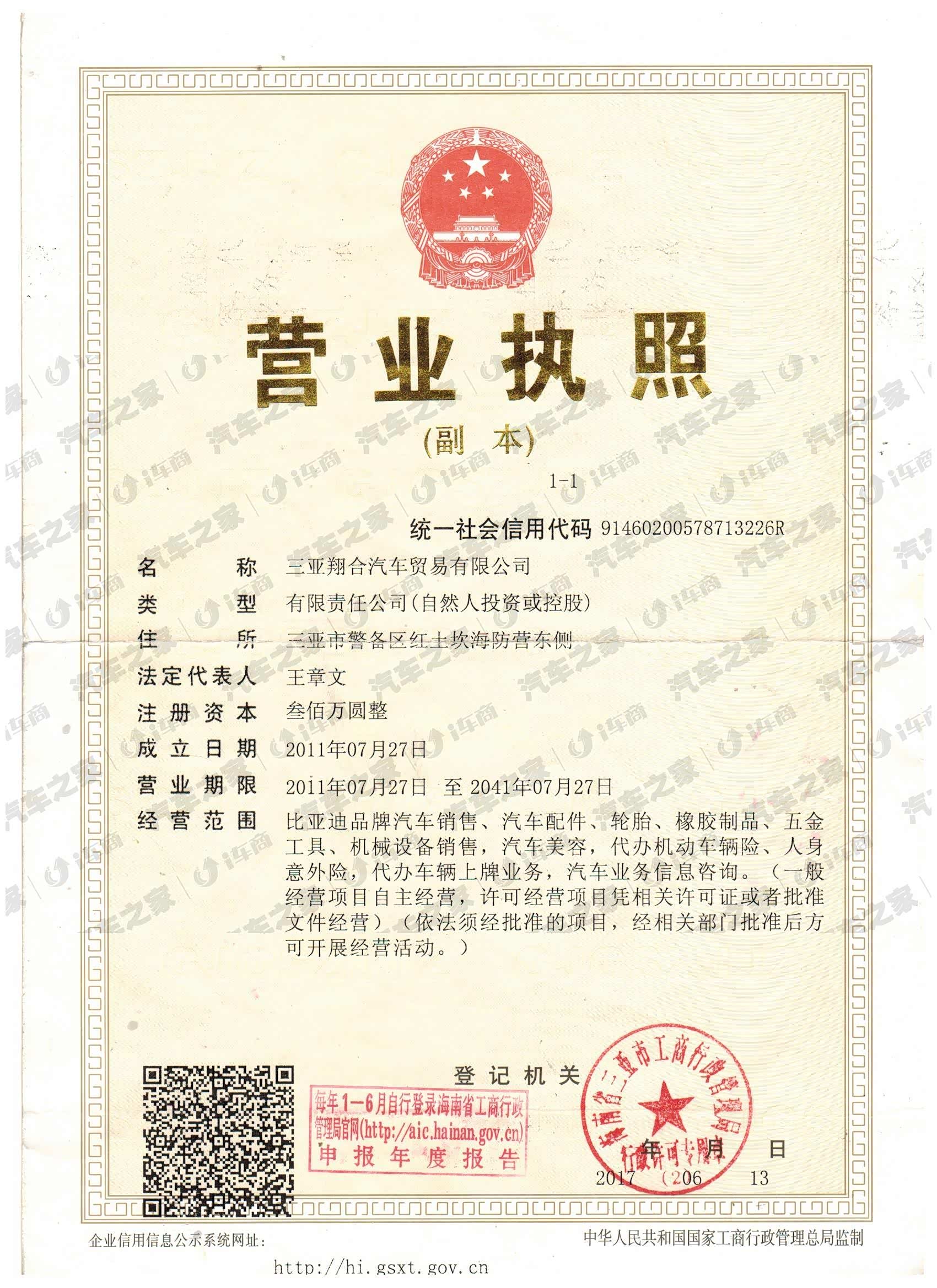 三亚翔合汽车贸易有限公司成立于2011年7月份,位于三亚市迎宾路451号(龙坡村西侧汽车城内),是比亚迪汽车销售有限公司授权成立的唯一一家三亚地区的汽车销售与五星售后服务店